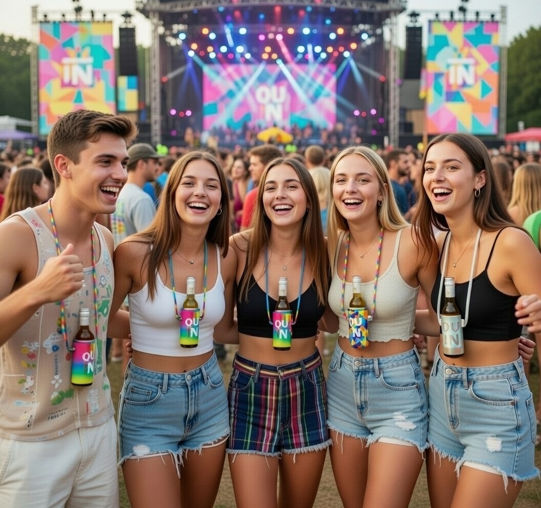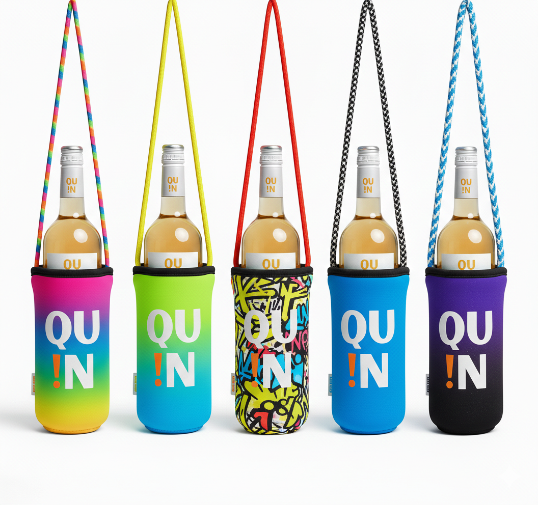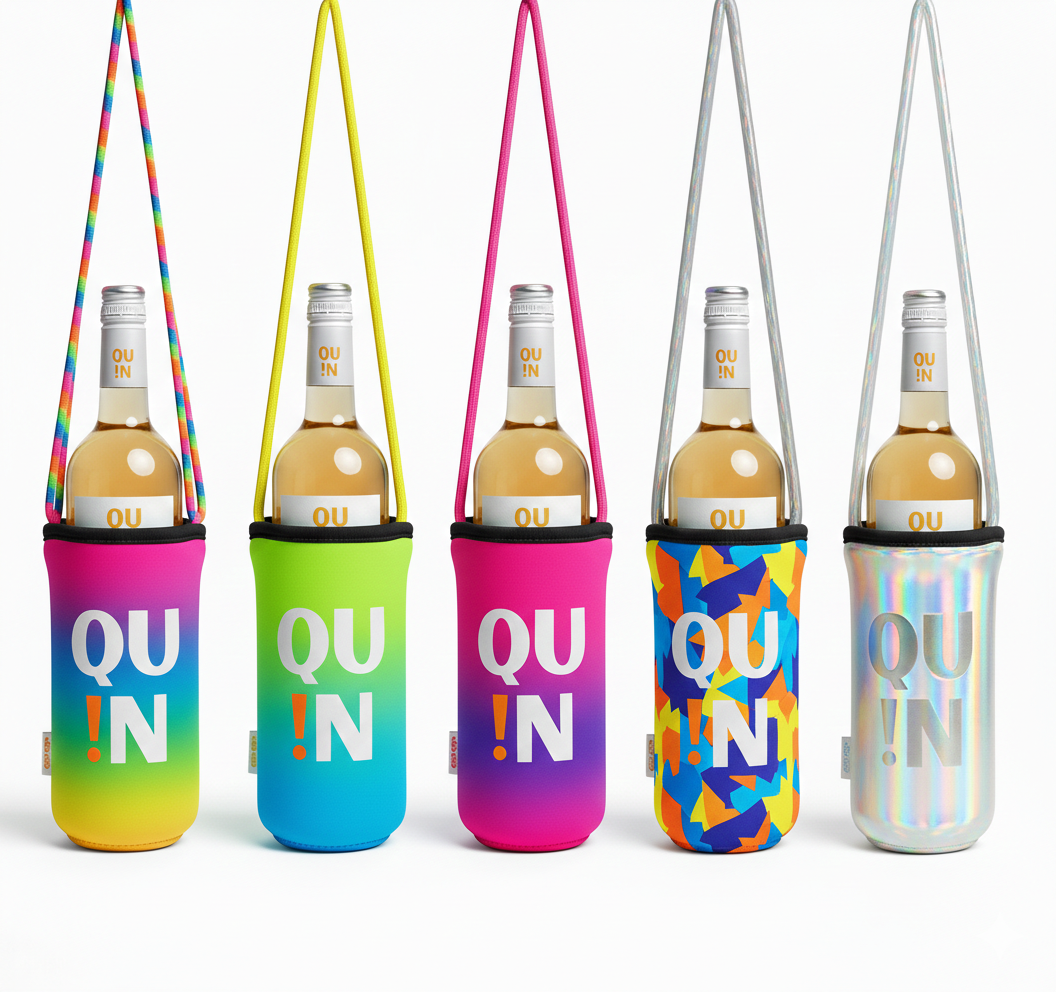 Gracias a su sistema de sujeción al cuello, puedes llevar tu QU!N siempre contigo mientras bailas, grabas contenido o saltas en un festival. No es solo una funda, es tu pase de movilidad total: mantiene el vino frío por más tiempo, protege el botellín y te libera de las ataduras del protocolo tradicional.